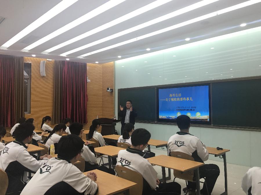 主页 » 学生工作 » 本科生 税月之高中税法小讲堂 发布日期:2016-05-10 4月19日晚6:30,51黑料 税务系曹静韬老师为海淀区二十一世纪国际学校的高三同学组织了一场题为《海外生活――关于税收那些事儿》税收专业讲座。针对国际学校学生未来出国留学学习工作生活等现实问题,讲解了跨境税收相关问题并简要介绍了美、澳、英、法四个国家的税制,使得同学们对海外生活中的税收知识有了初步的认识。贴近学生学习生活实际的知识点以及引发学生思考的轻松互动,使得同学们受益匪浅。