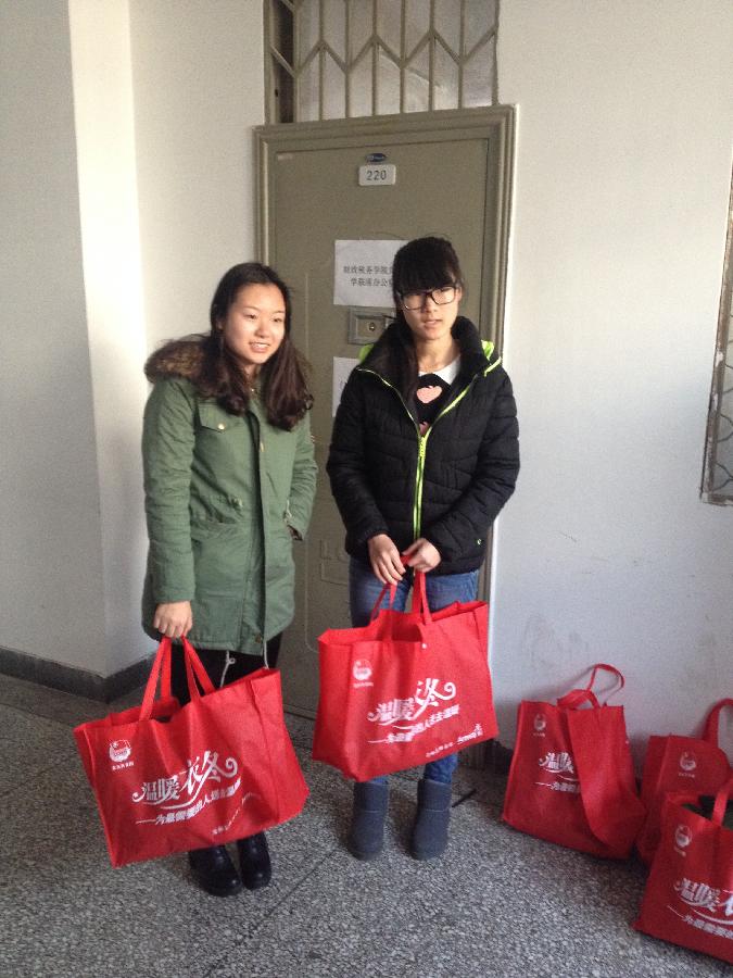 新学期开学,财税学院“温暖衣冬”衣物发放活动顺利圆满完成。本次温暖衣冬从2014年12月一直持续到2015年3月新学期开学,从分发衣物到派发衣物,共历时3个月,共有30名同学参加,以大一为主,共派发了40件冬衣。