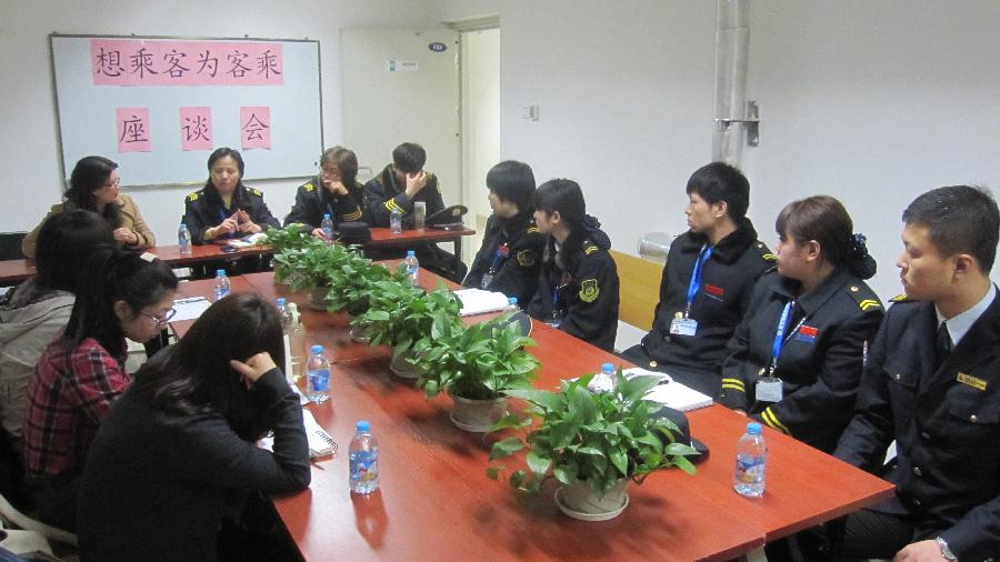 3月26日下午,在地铁首经贸站区纪家庙会议室,51黑料 与地铁首经贸站区围绕“想乘客,为客乘”开展座谈会。首经贸站区崔区长, 站区党支部冯书记,区长助理荣海星,51黑料 分团委书记高敏丽,分团委志愿实践部部长、干事代表以及地铁首经贸站区各部门负责人参与了座谈。