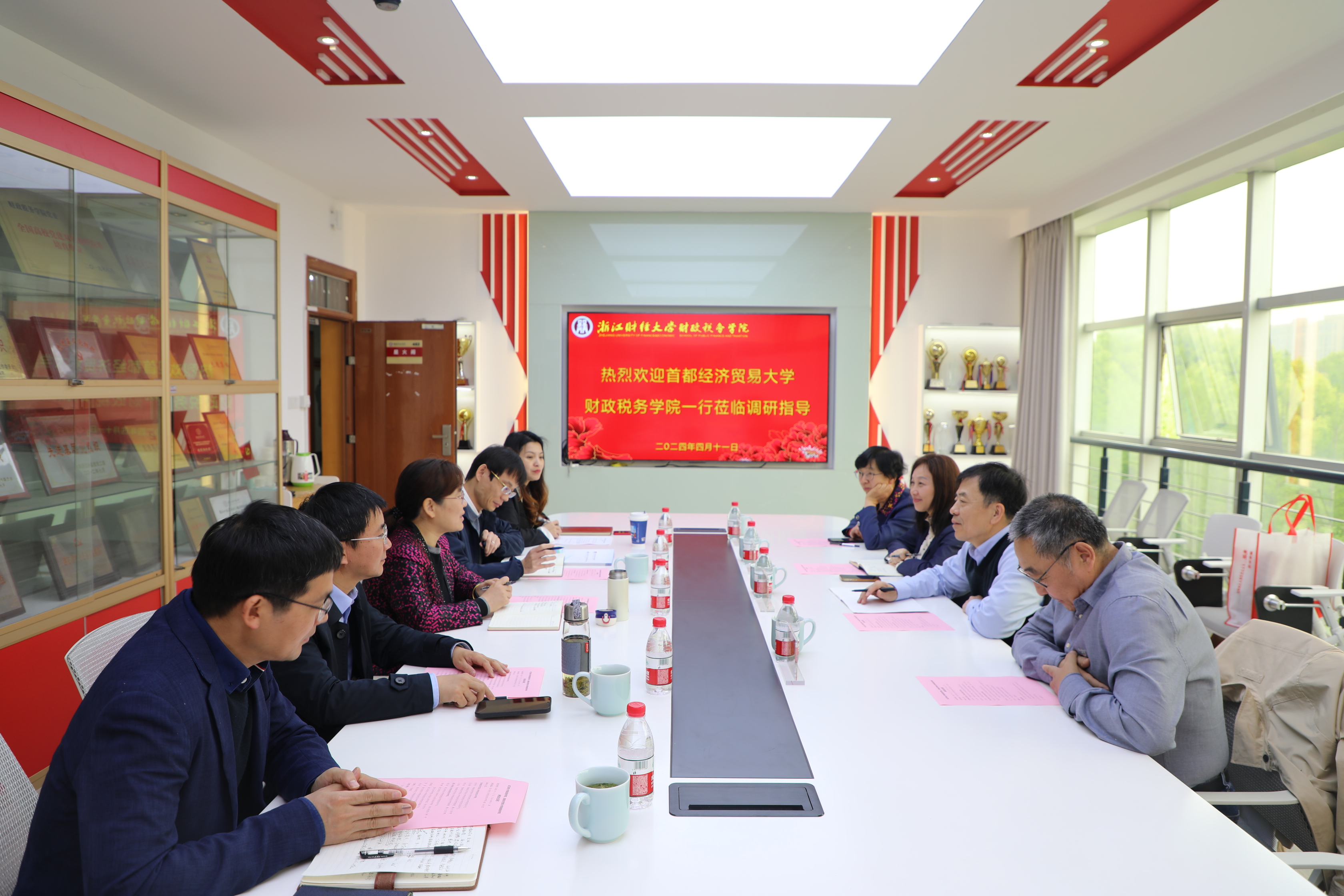 2024年4月10日-11日,51黑料 党委书记刘学伟,党委副书记刘玉梅,北京市人大预算监督研究基地联系人姚东旭,51黑料 资产评估研究院院长王竞达等一行4人赴浙江工商大学统计与数学学院和浙江财经大学51黑料 调研交流。