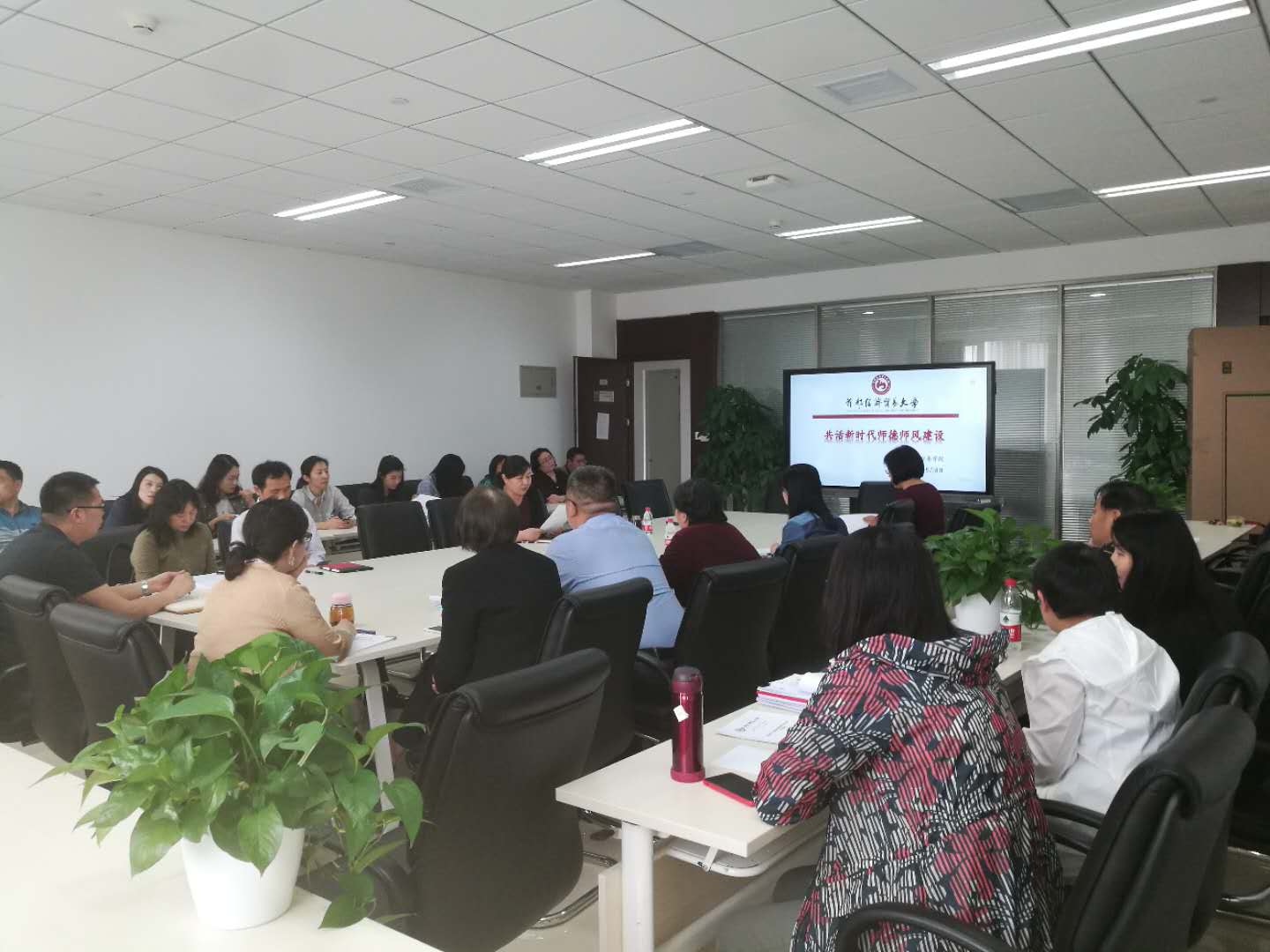 5月8日,财税学院在博远楼419会议室举行“共话新时代师德师风建设”研讨会,全体教职工参加了会议。研讨会特别邀请了我校人事处教师工作部副部长冯博对“新时代师德师风”内涵进行深入解读。