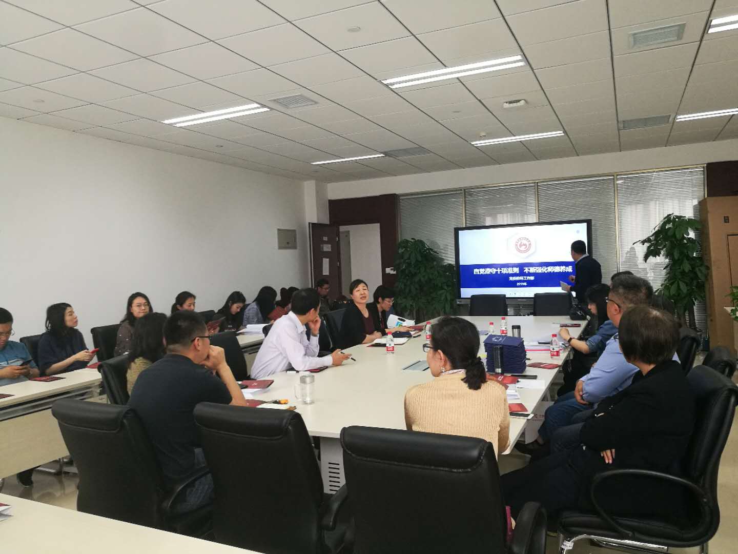 冯博副部长结合新时代高校教师职业行为十项准则做了“自觉遵守十项准则,不断强化师德养成”的精彩宣讲。冯老师结合近几年发生的师德失范案例及我校教师职业道德和行为规范生动讲解了职业行为十项准则,并明确提出师德的具体要求。他强调日常工作中教师要坚持廉洁从教,杜绝在招生、考试、评优推优、保研等关键环节徇私舞弊;老师们要遵守科研规范,不弄虚作假、抄袭剽窃、篡改侵吞他人学术成果、违规使用科研经费以及滥用学术资源和学术影响,不能故意重复发表学术成果。与学生的关系中要善待学生,不歧视、侮辱、恐吓学生;要加强自律,不索要或收受学生及家长的贵重礼品及礼金、有价证券、支付凭证等财物;洁身自好,不与在校学生发生恋爱等亲密关系;尊重学生,不利用职权便利要求学生代其从事与教育、教学、科研、管理无关的私人事务等。最后,冯老师希望各位教师都成为有理想信念、有道德情操、有扎实学识、有仁爱之心的好老师。