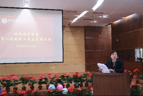 会议听取并审议了院长李红霞关于2019年度学院工作报告、财务工作报告和分工会主席陈蕾关于2019年度学院分工会工作报告。会议认为,院长李红霞所做的2019年度学院工作报告全面、客观地总结了学院各方面工作取得的成绩,并结合学院实际情况和整体发展目标,明确了下一年度的工作任务;2019年度学院财务工作报告能够按照财务公开的原则,向教职工发布较为详细的学院财务状况。