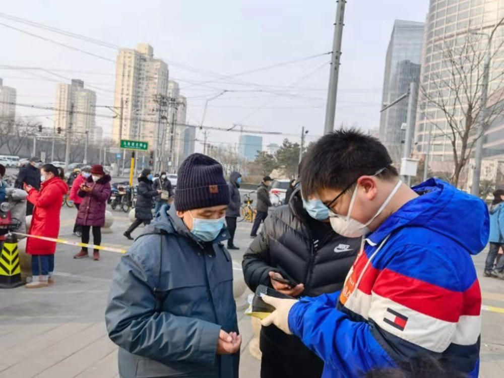 2018级靳艺菲同学谈到:“很荣幸能有机会参与本次核酸检测志愿活动,我的活动地点是牛街街道,这个街道附近的社区老年人比较多,他们不太会使用电子产品进行预约,我的工作是帮助他们预约成功,维持检测点的排队秩序,和一线抗疫人员一起完成国家的交付的任务。从下午到晚上,尽管天气寒冷,谁也没有因此转岗或退缩。作为一名大学生,能以这样的方式回馈社会,为抗疫做出一份贡献,我感到十分光荣。我坚信中国人民一定能战胜困难,迎来美好的春天!”