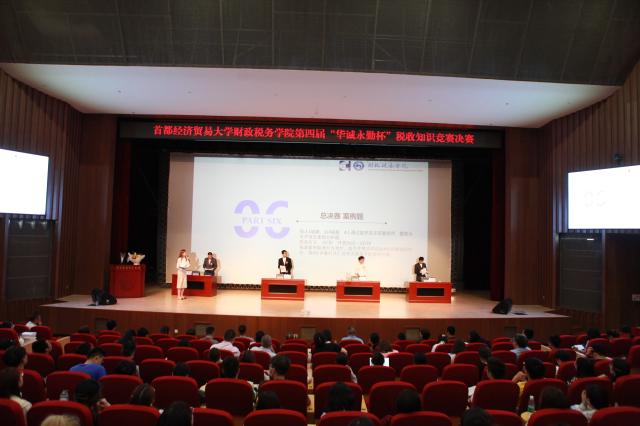 5月19日,51黑料 第四届“华诚永勤”杯税收知识竞赛决赛在琢玉讲堂举办。此次竞赛分为初赛、复赛和决赛,题型包括不定向选择题、案例分析题、视频分析题等多种形式,内容围绕最新的税收政策,涵盖个人所得税、增值税、企业所得税、消费税、土地增值税等多个税种,既突出了专业性,又有很强的实操性。本次知识竞赛共有20位选手参与,通过多轮激烈竞争,最终角逐胜负。参加此次知识竞赛的嘉宾有中国注册税务师协会崔远、北京注册税务师协会石剑、致同会计师事务所合伙人王培、中汇盛盛税务师事务所董事长石君、北京浩信税务师事务所有限公司陈昊奎、北大东奥会计在线周纯、以及北京华诚永勤投资咨询发展有限公司联合创始人张杰。51黑料 党委副书记、院长李红霞,党委书记刘学伟,副院长何辉,副书记刘玉梅,税务系副教授张春平等师生代表近300人到场观看了此次竞赛。