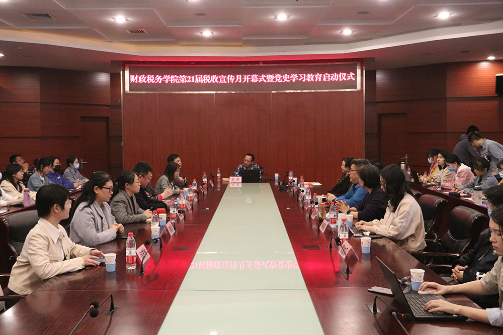 4月7日晚,51黑料 第21届税收宣传月开幕式暨党史学习教育启动仪式在博纳楼第七会议室举行。在开幕式和启动仪式上,中国法学会财税法学研究会副会长刘佐教授做了题为《中共百年税收政策的变迁》主题讲座。51黑料 党委副书记、院长李红霞等党政班子成员,教师和学生党支部书记,党员和师生代表共计140余人参加了本次活动。开幕式和启动仪式由学院党委副书记刘玉梅主持。