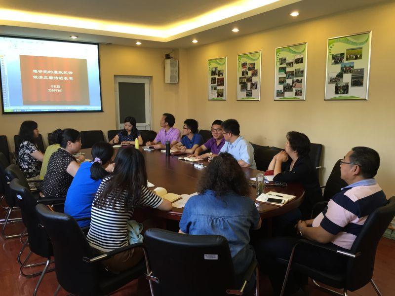 在学习活动中,学院党委书记李红霞带领教工第一党支部的成员首先学习了2016年1月1日正式实施的《中国共产党廉洁自律准则》,指出新修订的《准则》在内容上做“减法”,在对象上做“加法”,即把字数减少的同时,适用范围却由党员领导干部扩大到全体党员,内容也扩展到了廉洁用权、廉洁修身、廉洁齐家等方面,充分体了现了我党全新的纪律观、廉洁观。另外,针对新《准则》要求,提出全体党员应坚持正确对待和处理公与私、廉与腐、俭与奢、苦与乐的关系;党员领导干部应围绕“廉洁”二字从公仆本色、行使权力、品行操守、良好家风等方面作出表率。