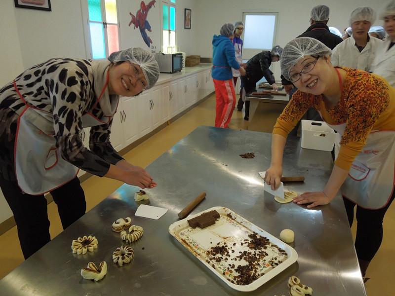 参观结束,来到DIY空间,老师、孩子都异常兴奋,到大家一展身手的时候了。工作人员早已将食材备好,简单介绍后,大家忙活起来啦。做面包的使劲往里塞葡萄干,做饼干的设计着各种奇怪造型,做巧克力的粘得那哪儿都是,抬头一看,哈哈,小花猫、大花脸,都忙得不亦乐乎。香喷喷的自制点心出炉啦,孩子大人欢呼雀跃。老师们都夸这样的活动有意义,组织得好,以后要多开展。