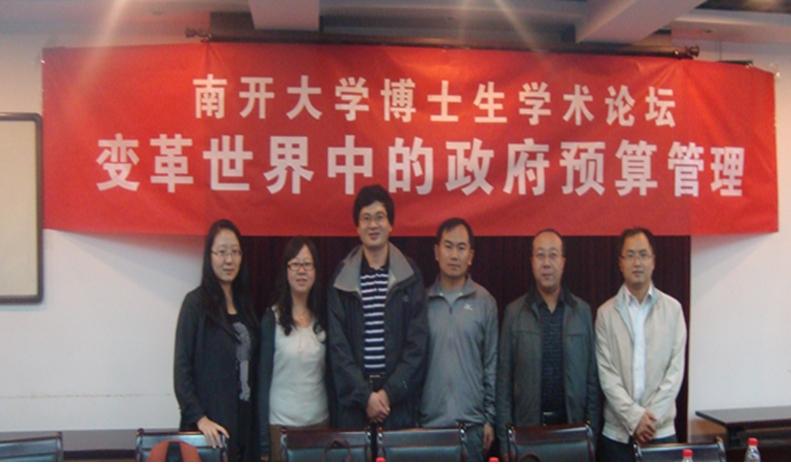 2013年10月13日,我院2013级财政学博士生张晓丽、袁华萍、朱智强、肖明迁、张义军应邀参加了南开大学中国财税发展研究中心举办的博士生学术论坛:变革世界中的政府预算绩效管理。