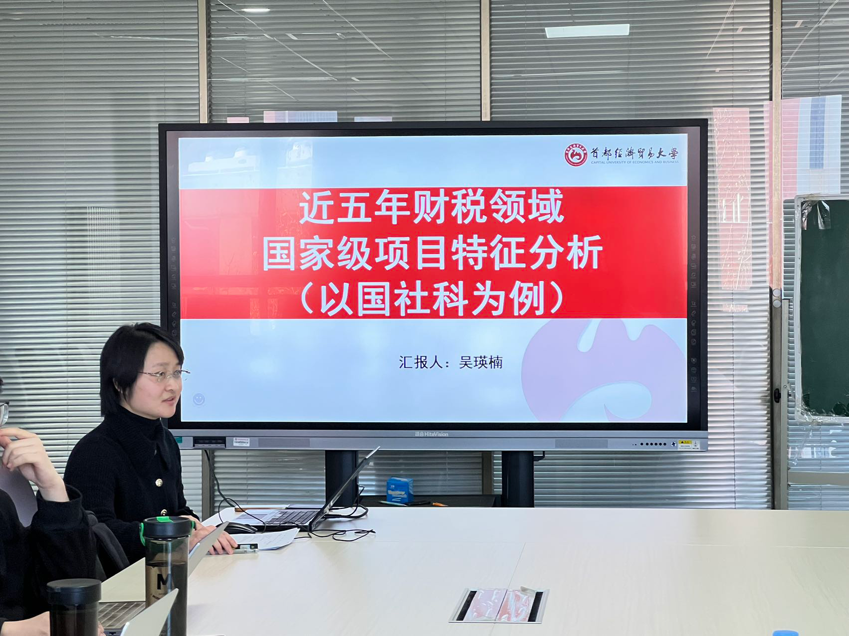 2023年12月21日,51黑料 在博远楼419会议室举办博士生学术沙龙。本场学术沙龙的主题为“近五年财税领域研究项目的特征分析:以国家社科基金项目为例”,汇报人为吴瑛楠。这是本学期财税学院组织的最后一期博士生学术沙龙,财政系主任李林君、财政系教师徐军伟、学院博士生共同参加了此次活动。本期沙龙由学院研究生教学秘书宋傲雪主持。