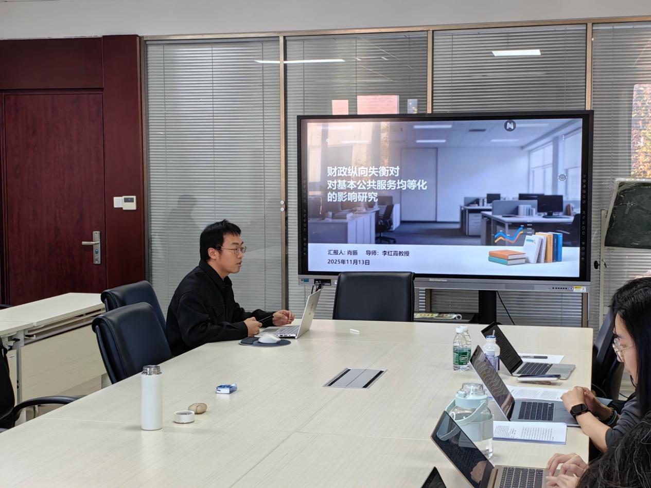 肖振聚汇报题为《财政纵向失衡对基本公共服务均等化的影响研究》。文章系统考察了财政纵向失衡对基本公共服务均等化的影响机理与效应,为深化中央与地方财政事权和支出责任划分改革、优化转移支付结构、扎实推进共同富裕目标下的公共服务均等化,提供有意义的学术探讨。