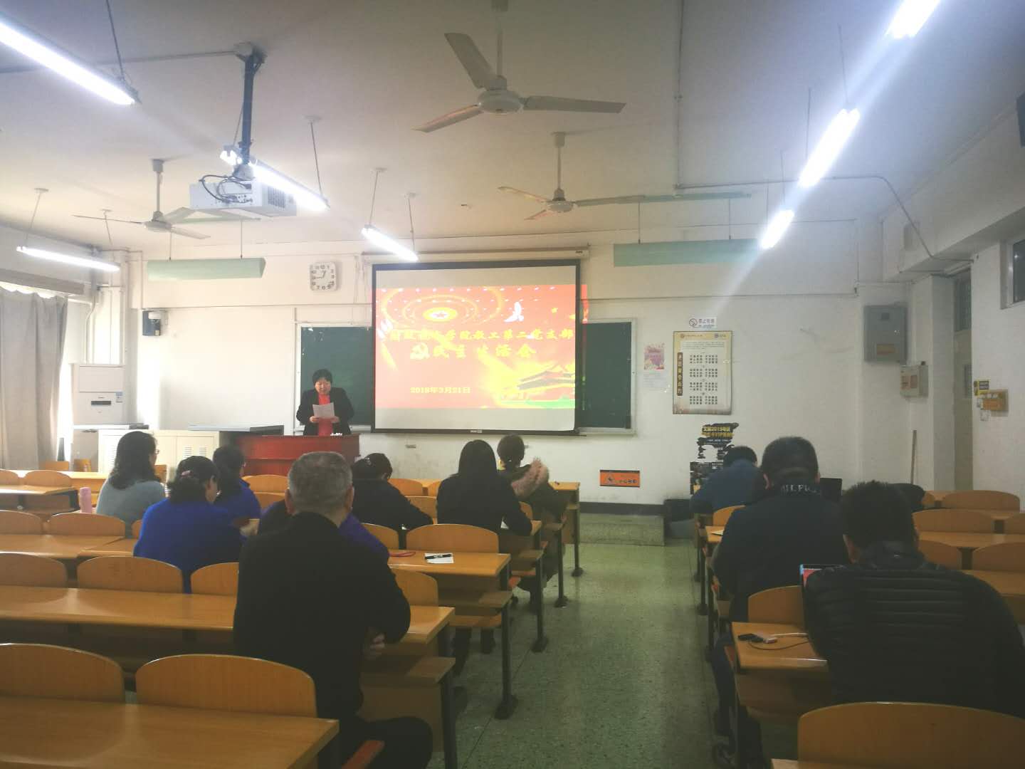 会议主要有以下内容:一、按照会议安排,丁书记向与会党员汇报了教工第二支部2017年的主要工作情况,对2017年支部工作取得的成绩与不足之处进行了全面总结,得到全体党员认可。二、丁书记作个人述职报告,作为基层党组织的第一负责人,丁书记总结了2017年个人履职情况,并对工作中可能存在的不足之处进行了深刻剖析。三,支部组织委员带领与会党员集体学习“十四个明确”,旨在提高党员的党性觉悟与理论水平。四、每位党员对自己过去一年的工作情况进行总结,开征了批评与自我批评。五、丁芸书记组织优秀党员评定。