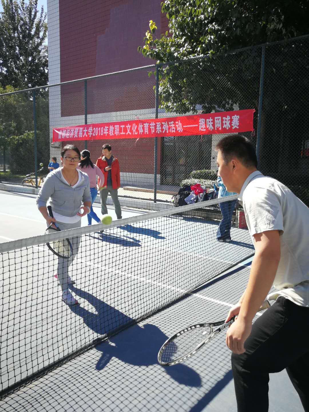 为丰富教职工业余生活,校工会组织开展多项文体活动,首次组织趣味网球赛。财税学院分工会积极响应校工会活动号召,在院长、党委书记李红霞老师的鼓励和分工会吴晖老师的啦啦队助威下,财税学院郎大鹏、刘辉、高敏丽、宋傲雪、李兴超老师组建了网球队,并在10月11日的趣味比赛中一举夺冠。