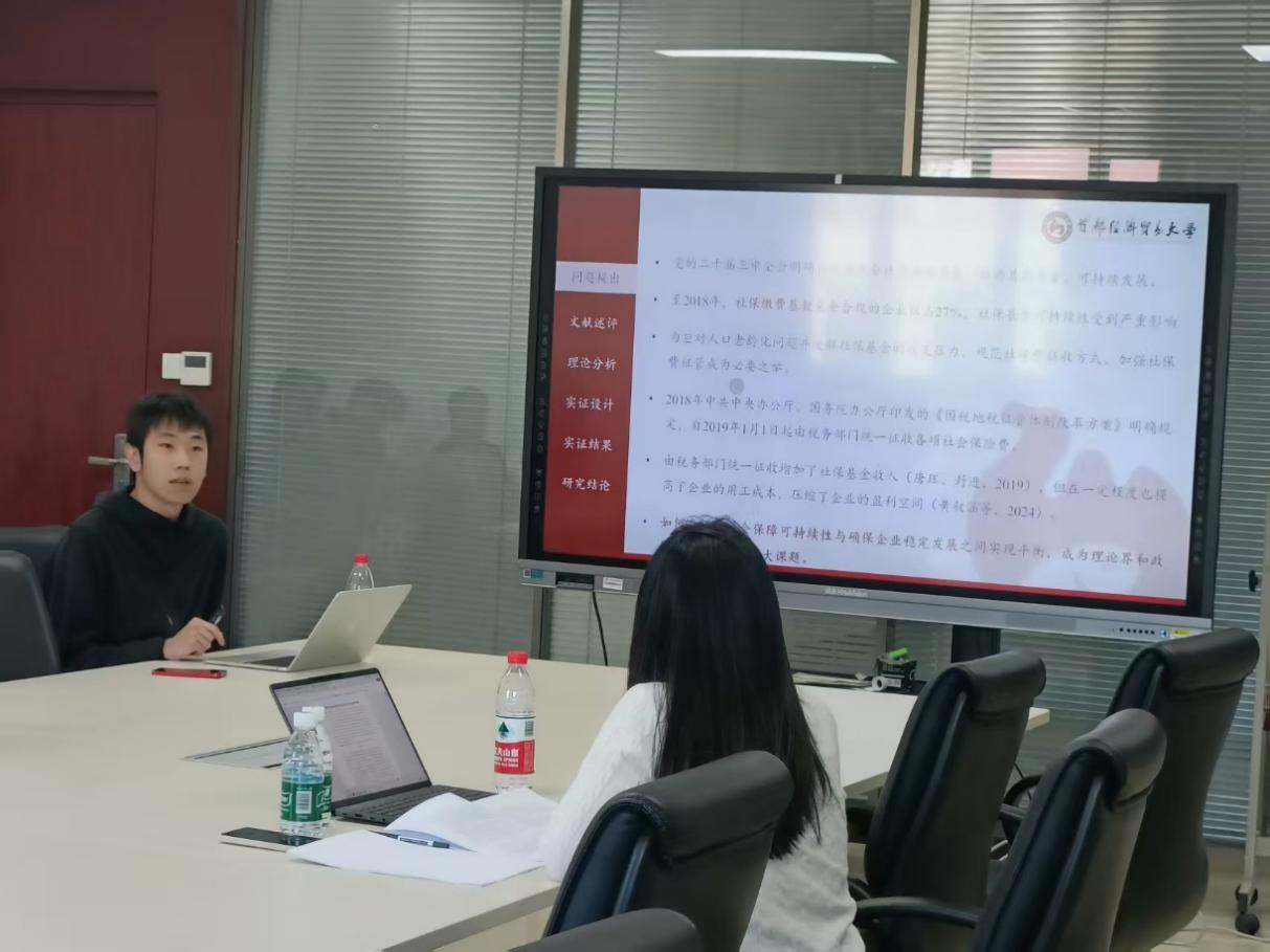 2025年11月20日,51黑料 于博远楼419会议室顺利举办第33期博士生学术沙龙。本次活动设置两场专题汇报,聚焦“社保费征管体制改革与企业劳动节约型技术创新”和“个人所得税改革对提升生育意愿的效应研究”两个主题。51黑料 2023级博士生刘祎男、何天琦先后进行学术汇报,税务系教师韩瑞雪受邀担任点评嘉宾,学院博士生共同参与交流研讨。