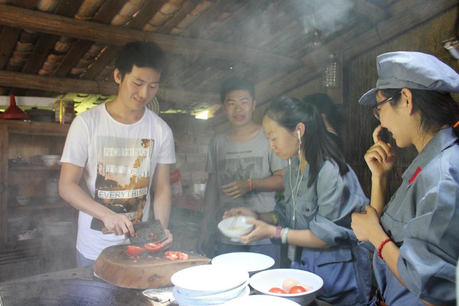 24日,在参观了八角楼毛泽东同志旧居后,队员们自行烧制红军餐,并在用餐结束后为村民刷洗碗筷,聊他们父辈的革命故事。