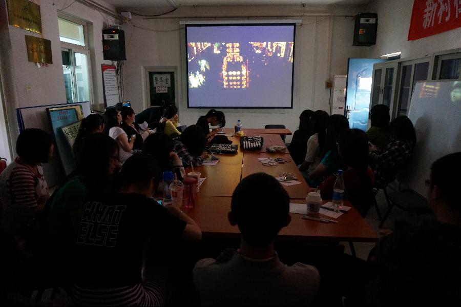 5月6日,2014级注册资产评估师国际班团支部30余人来到丰台区育芳园社区,与社区居民共同观看了影片《风声》。