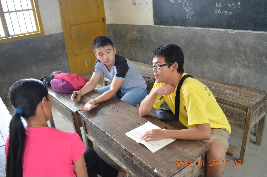 实践团与当地教师进行了认真的交谈,仔细了解了两所学校在师资力量、课程设置、学生构成等方面的具体情况,并就留守儿童的教育现状与存在的问题交流了看法。