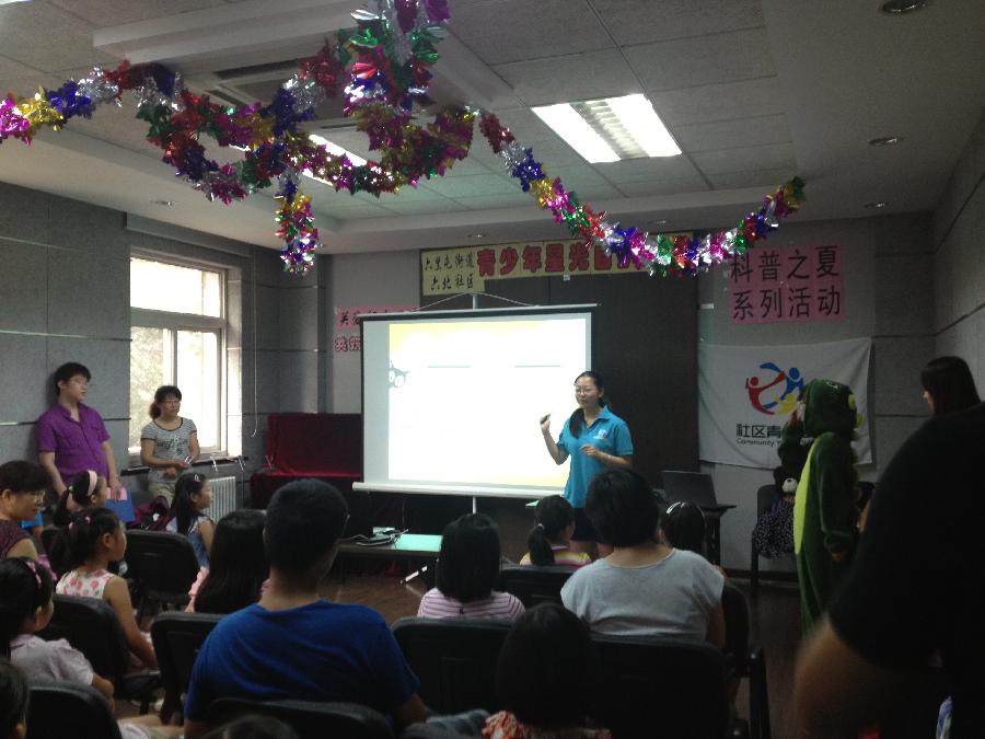 在校团委的大力支持下,暑期放假前,51黑料 与朝阳区六里屯文化服务中心青年汇取得联系并商定暑期联合开展活动。51黑料 非常重视与青年汇的对接,特别指派暑期实践团与其联系。8月13日,51黑料 暑期社会实践团来到朝阳区六里屯街道文化服务中心与社区的小朋友和家长一起参加了社区组织开展的“青少年星光自护课堂系列活动――关爱妇女儿童,共筑中国梦”。 暑期社会实践团的同学主要负责活动开始前会场布置和准备,活动进行中现场秩序维护以及活动结束后与小朋友和家长的交流研讨。