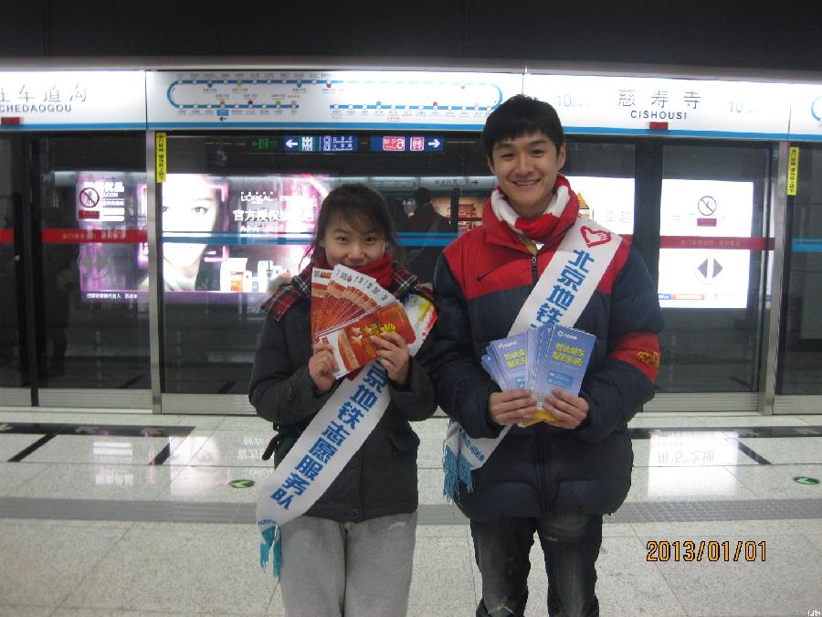 在校团委和北京地铁公司团委的大力支持和悉心指导下,2012年12月30日、31日,2013年1月1日、4日,51黑料 先后选派志愿者96人次在北京地铁十号线二期首经贸站、纪家庙站和慈寿寺站开展主题为“我和我的首经贸”地铁志愿服务活动。