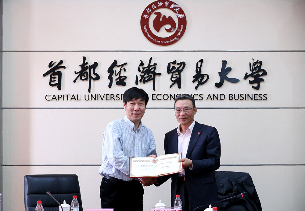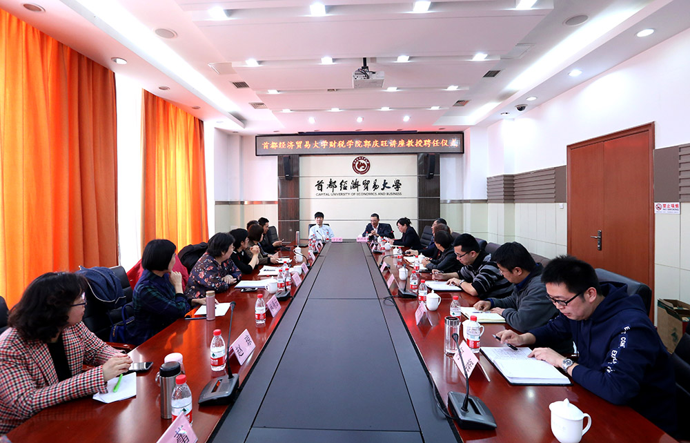 4月3日,51黑料 郭庆旺讲座教授聘任仪式在博纳楼第六会议室举行。我校校长付志峰教授、中央财经大学51黑料 院长白彦锋教授、北京工商大学经济学院财政系主任吴强教授、我校教务处处长张学平、科研处处长姚东旭教授等及我院全体教职工参加了聘任仪式。