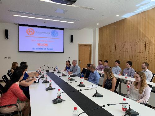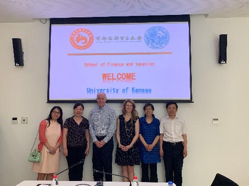 2019年5月23日上午,美国堪萨斯大学师生一行17人到我校交流。51黑料 党委书记刘学伟,院长李红霞,副院长王竞达,资产评估系教师张亮以及分团委书记韩天艺参加了交流活动。