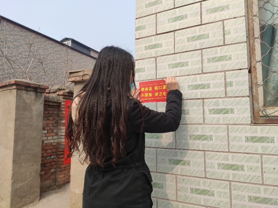 村里的宣传栏贴着各类疫情防控宣传海报,村口也挂起了横幅“万众一心,众志成城,坚决打赢疫情防控阻击战”。村委会的成员也通过朋友圈的形式积极向大家宣传疫情相关知识,提高大家的重视程度,避免过度恐慌。