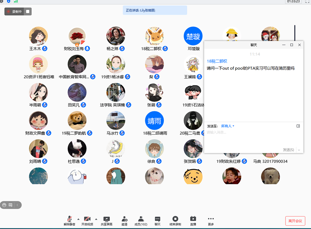 1月23日,51黑料 贝壳成长营就业辅导系列活动如期而至,本期活动的第一场讲座是由中国国际金融股份有限公司招聘负责人张晓丽带来的“职业规划精准定位,敲开名企之门”。张晓丽曾任宝洁、普华永道、汇丰银行等知名企业招聘经理,有着丰富的人力资源管理和职业生涯规划经验。讲座采用腾讯会议线上进行,51黑料 党委副书记刘玉梅、分团委书记吴瑛楠、辅导员贺加贝以及100余名同学参加此次讲座。