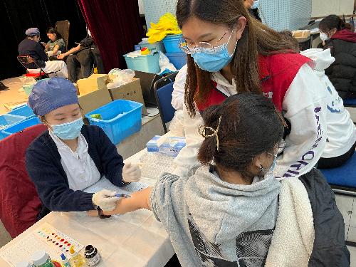 在等待献血的过程中,财税同学井然有序地完成填报信息、测量血压、采血等环节。等待过程中,同学们时刻关注着检测结果,和现场的医护人员沟通自己的情况,希望自己能够顺利献血。学院的老师和志愿者同学也在大家等待的过程中,送上一杯杯温暖的红糖水,为同学们补充能量。