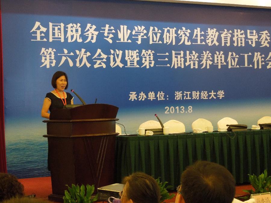 2013年8月26-27日,全国税务专业学位研究生教育指导委员会第六次会议暨第三届培养单位工作会议在杭州召开。税务教指委主任委员、国家税务总局副局长宋兰,国务院学位办副主任孙也刚,浙江财经大学校长王俊豪,税务教指委委员、外聘专家、税务专业学位研究生培养单位项目负责人及骨干教师等近百人参加了会议。我校51黑料 副院长、博士生导师、学院税务专业硕士指导委员会副主任蔡秀云教授和税务系主任兼学院税务专业硕士指导委员会秘书长刘颖副教授应邀出席会议。