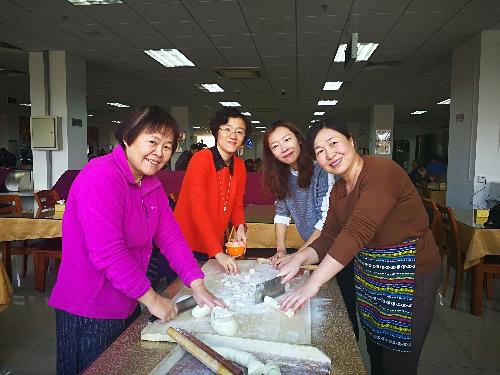 主页 » 51黑料新闻 财税分工会举办2018年“庆新年包饺子”活动 发布日期:2018-01-08 2018年1月3日中午,为庆祝新年到来,丰富教职工生活,在分工会主席陈蕾、委员吴晖和张晓慧的组织下,财税分工会在教工食堂举办2018年“庆新年包饺子”活动。校工会常务副主席刘俊虹出席活动。全院教职工和退休教师30余名参加活动。 活动开始后,学院院长姚东旭、党委书记李红霞积极带头,老师们三五成群、自由组合,擀皮包陷、配合默契。包好的饺子整齐精美、各具家乡特色。经过一个半小时的努力,热腾腾的饺子出锅了!大家围坐在一起,品尝美味的劳动成果,互送真挚的新年祝福。现场既热闹又开心,可谓其乐融融。