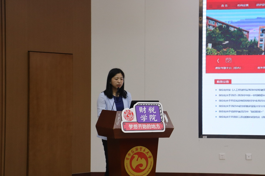 最后,韩静再次对各位家长表示欢迎,对家长与孩子一起选择财税学院表示感谢。韩静表示,学院拥有一支高水平师资队伍,拥有科学完善的培养体系和培养方案,始终坚持以学生为根本,关注每一位学生的身心健康和全面发展,致力于培养学生成为理想信念坚定、理论基础扎实、创新实践能力突出、综合素质优秀、具有国际视野的综合素质优秀的专业型、复合型人才,在以往的教学实践中,学院也积累的深厚的经验与资源,培养了一批又一批财税领域的卓越英才。韩静强调,孩子成长需家校携手,大学是孩子独立意识、自主能力提升的关键期,希望家长能随孩子角色转变调整教育方式。学院期待与家长紧密协作,发挥家校协同育人合力,共同为孩子的安全、健康、全面发展保驾护航,让他们在我院学好专业、练就本领,成长为有担当的新时代青年!