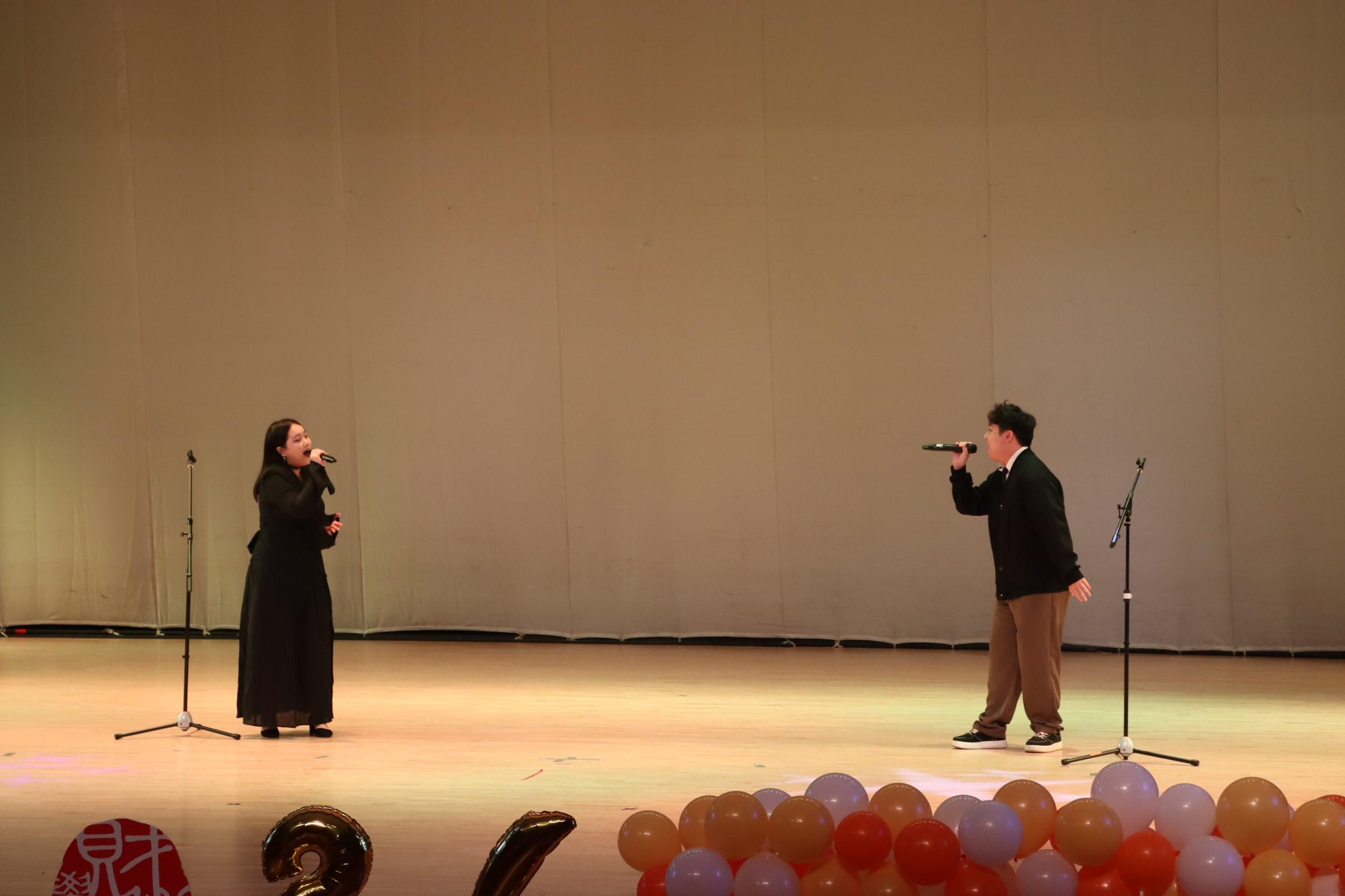 舞台上,两位舞者身姿矫健、舞步灵动。他们用充满力量与韵律的动作,将爵士舞的魅力展现无遗。快速的步伐变换、流畅的肢体扭动,尽显青春活力与激情。舞者间默契十足,每一个眼神、每一次配合都恰到好处。这场爵士双人舞不仅是表演,更是为新生们送上的活力贺礼,欢迎他们开启精彩校园生活。